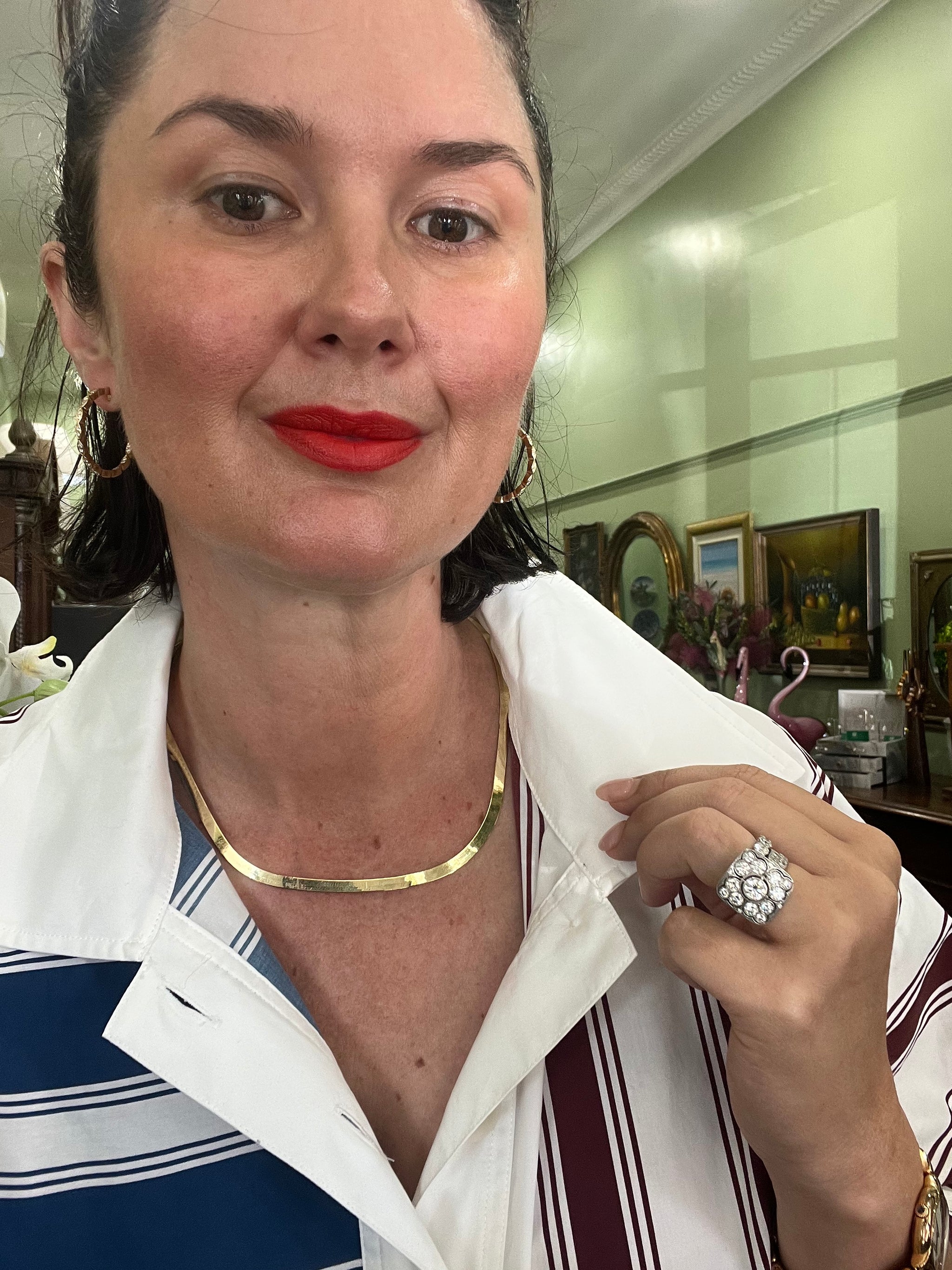A modern herringbone style necklace in 9ct yellow gold.  Sits lovely and flat on the neck for comfort.