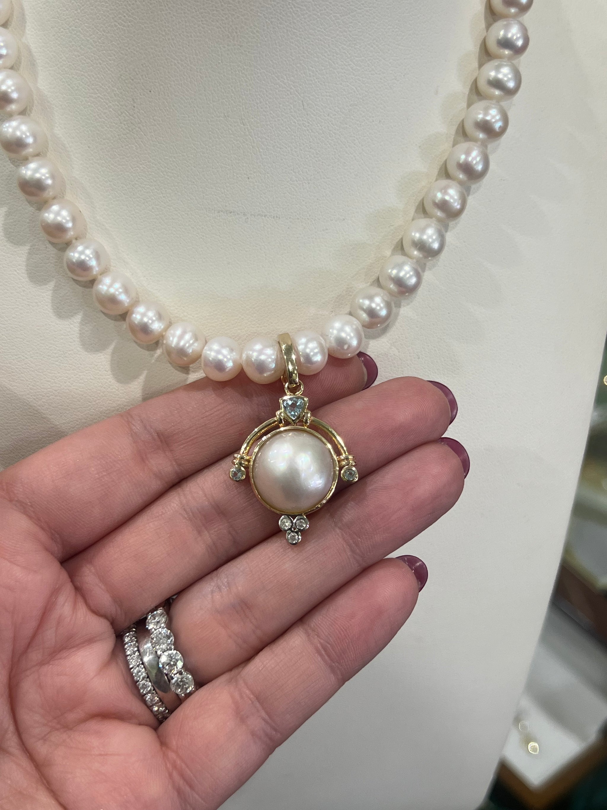Mabe Pearl, Diamond and Topaz Enhancer in Yellow Gold