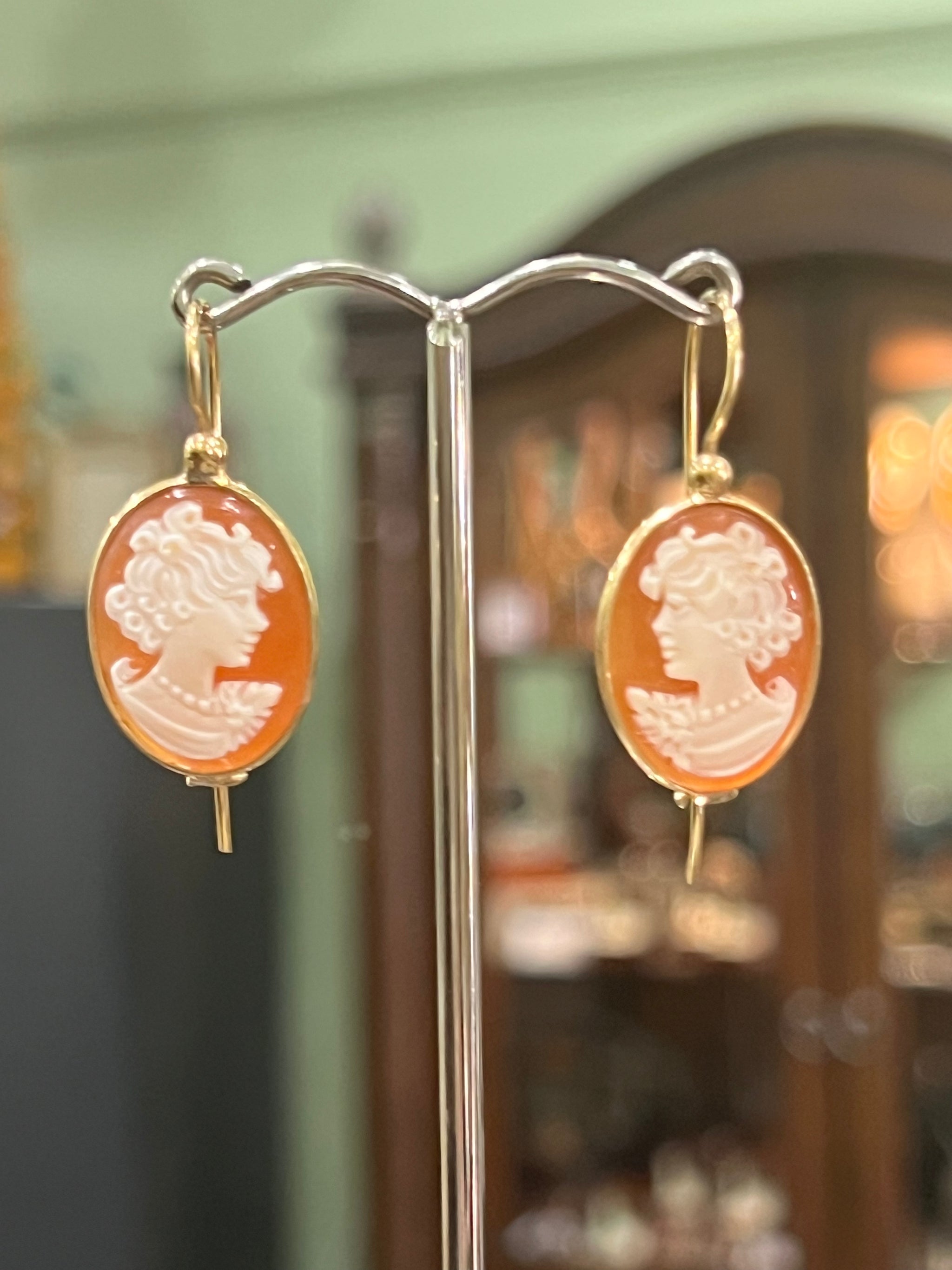A romantic pair of fancy 'lady' Cameo earrings fresh from Italy.
