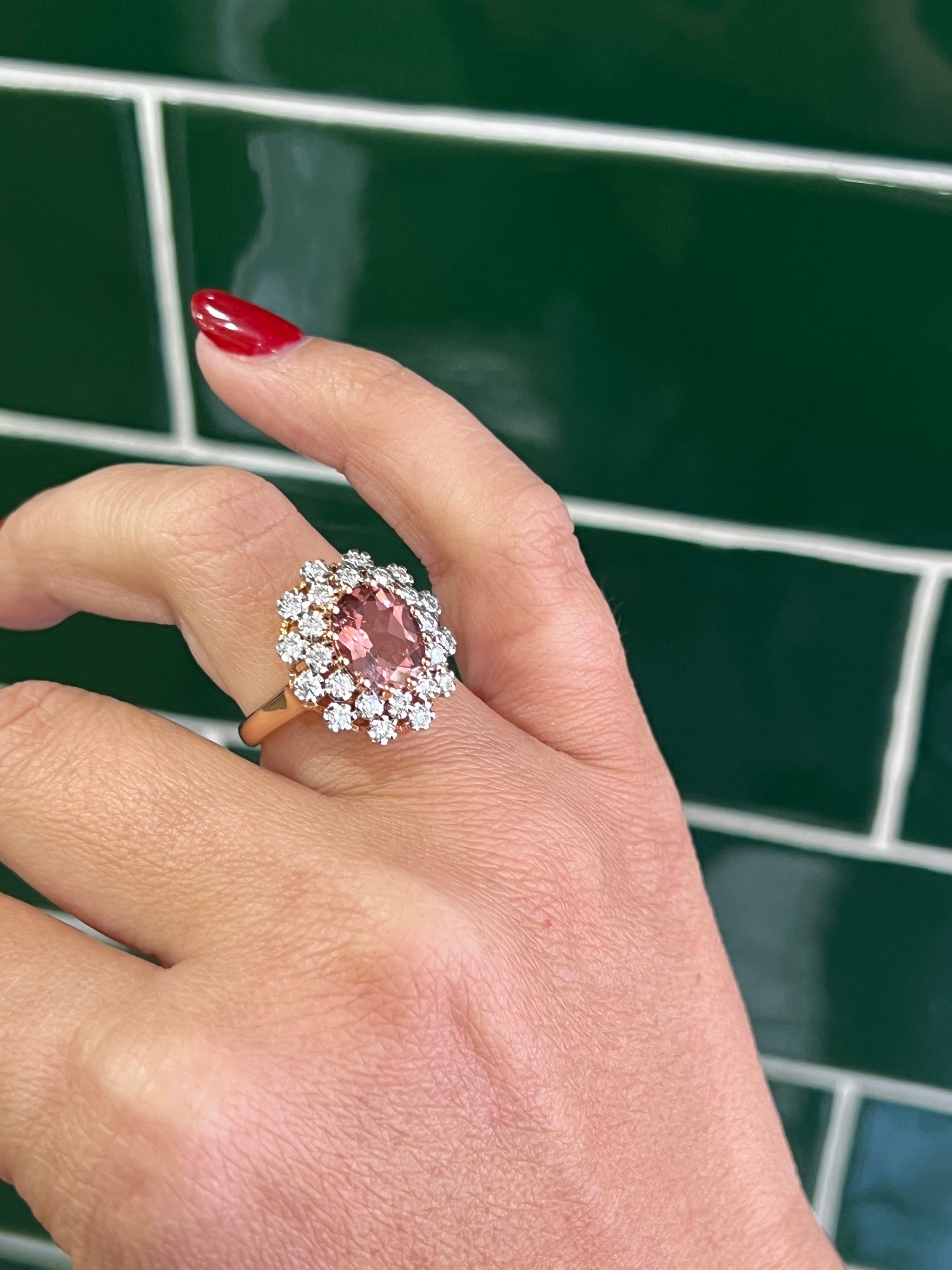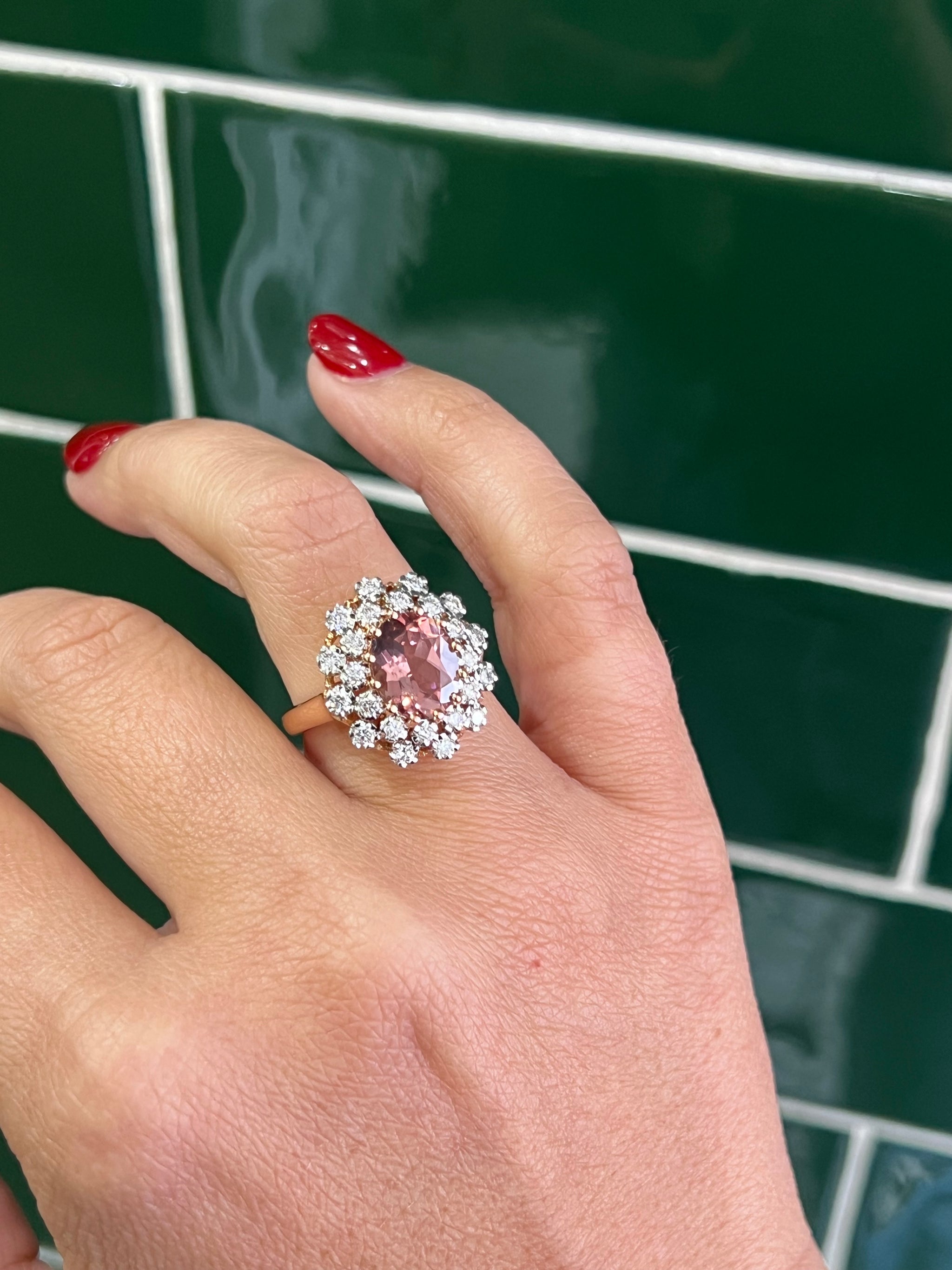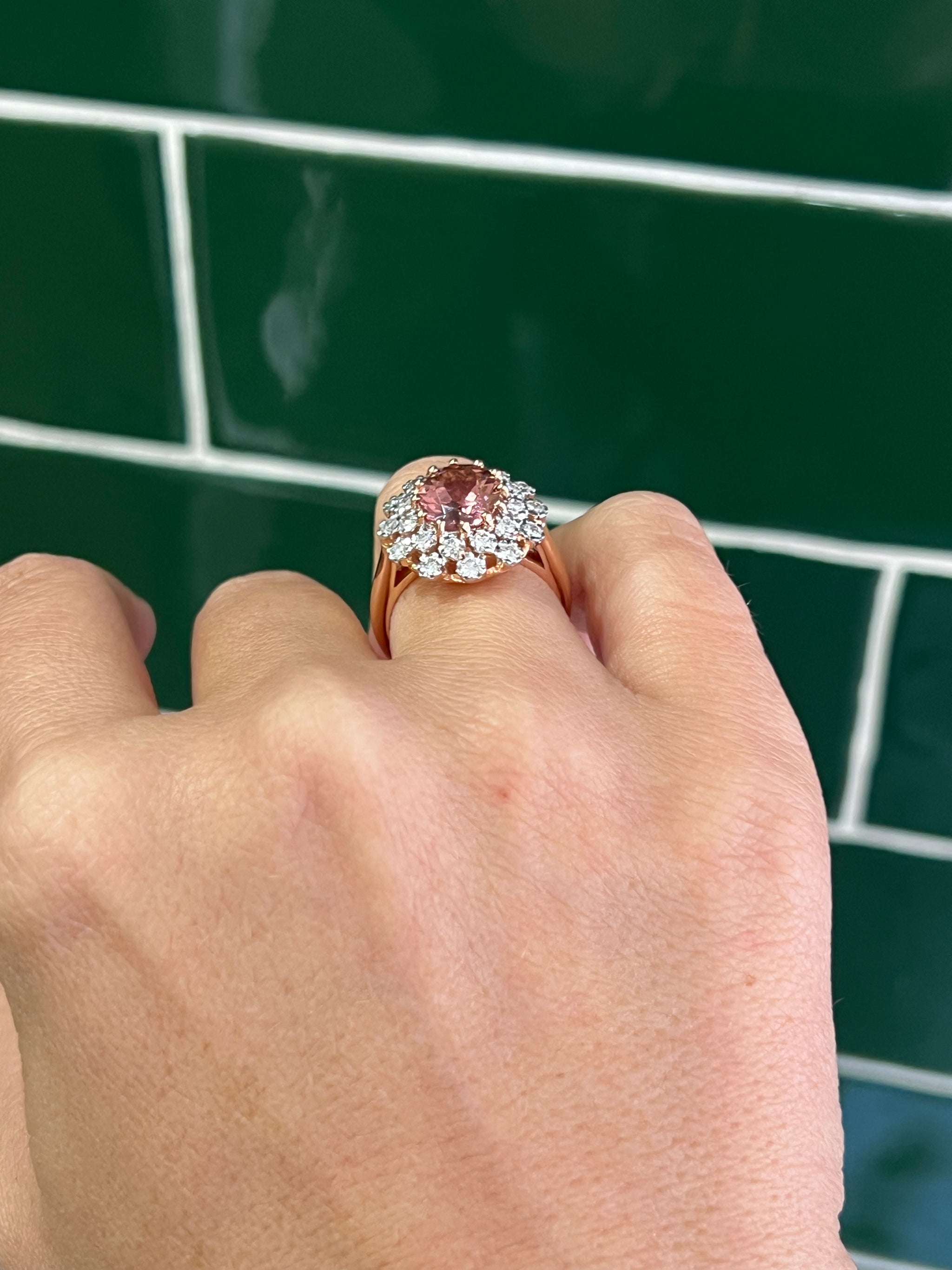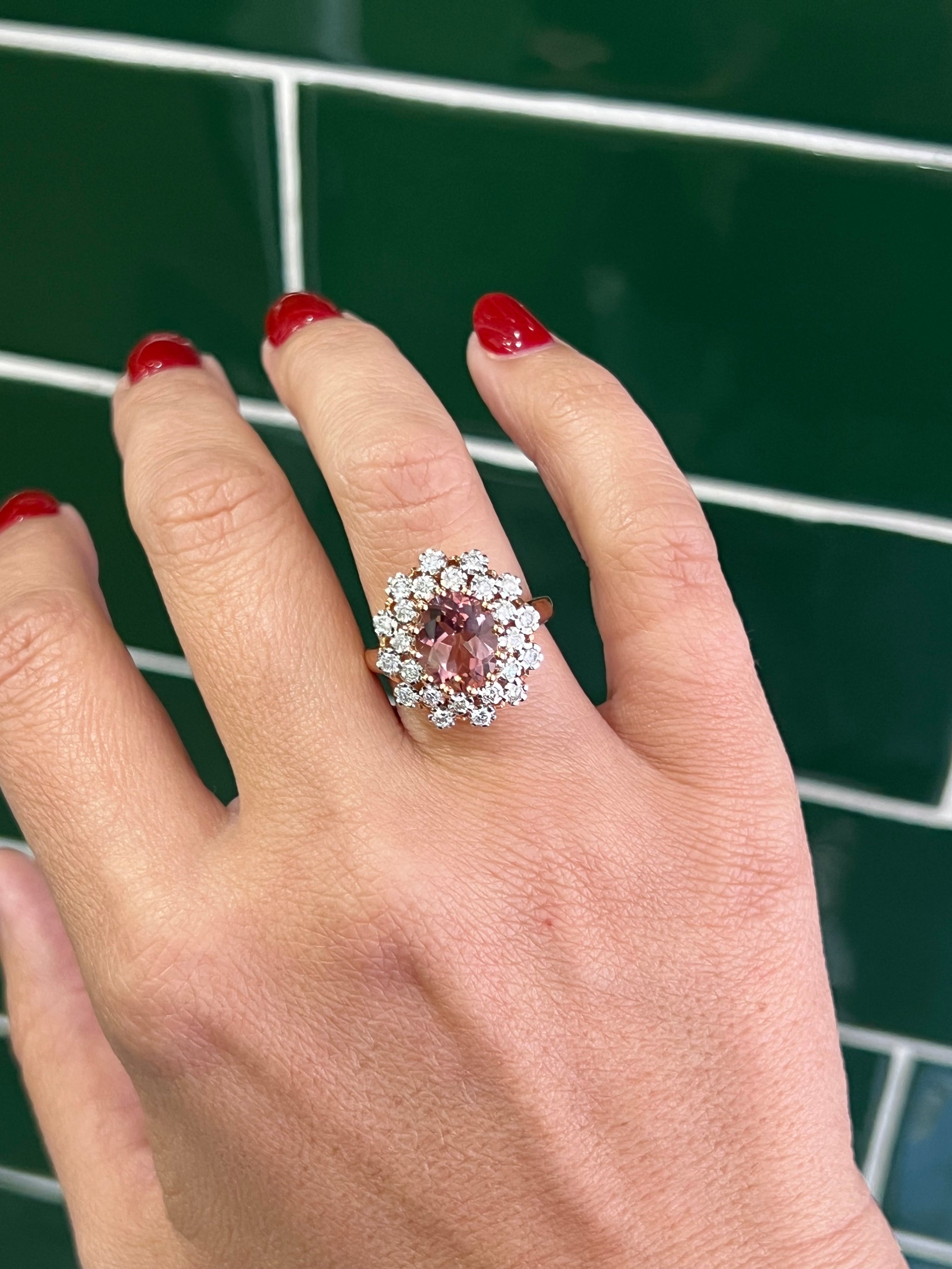 Pink Tourmaline and Diamond Ring in 18ct Rose Gold