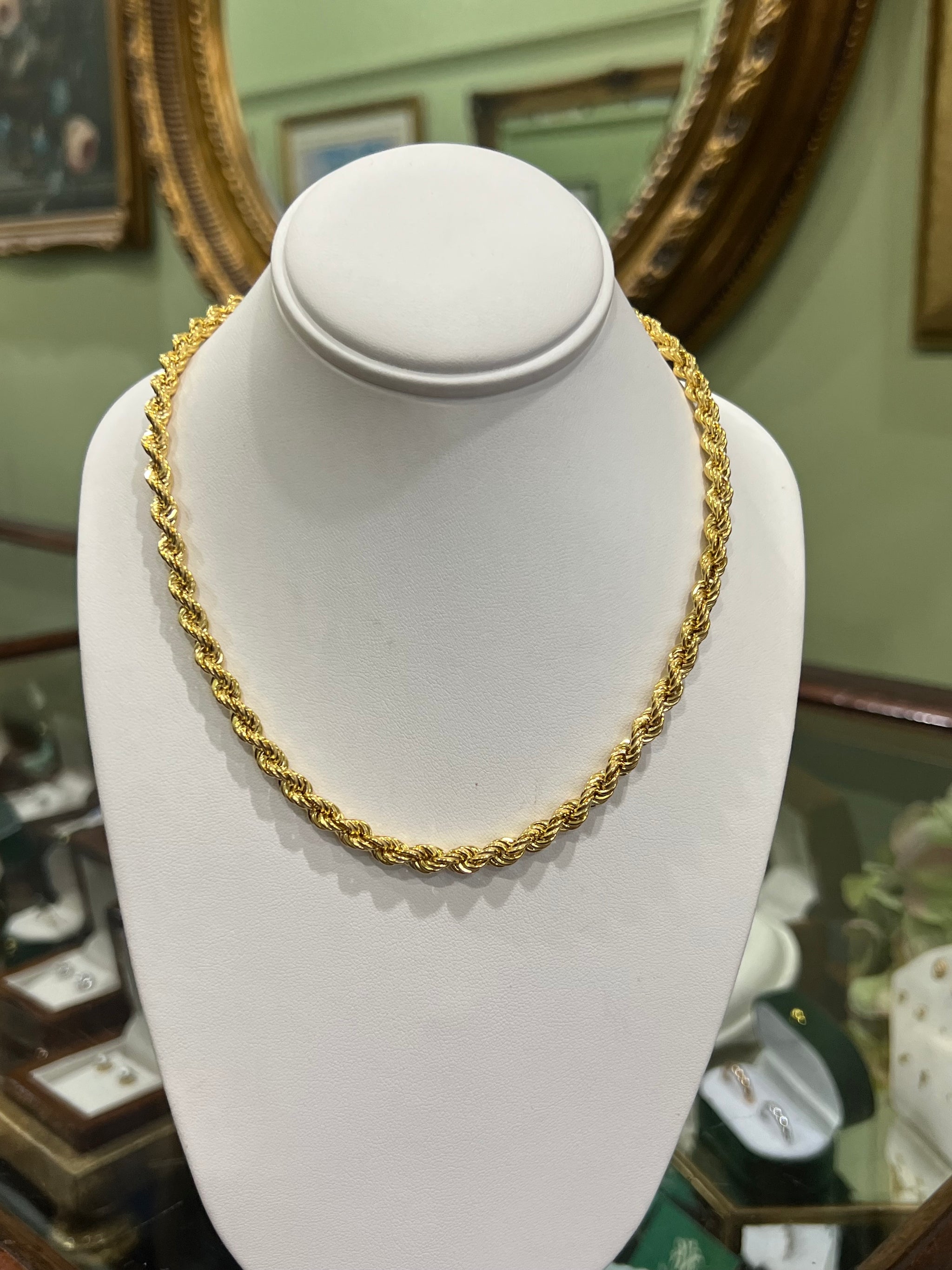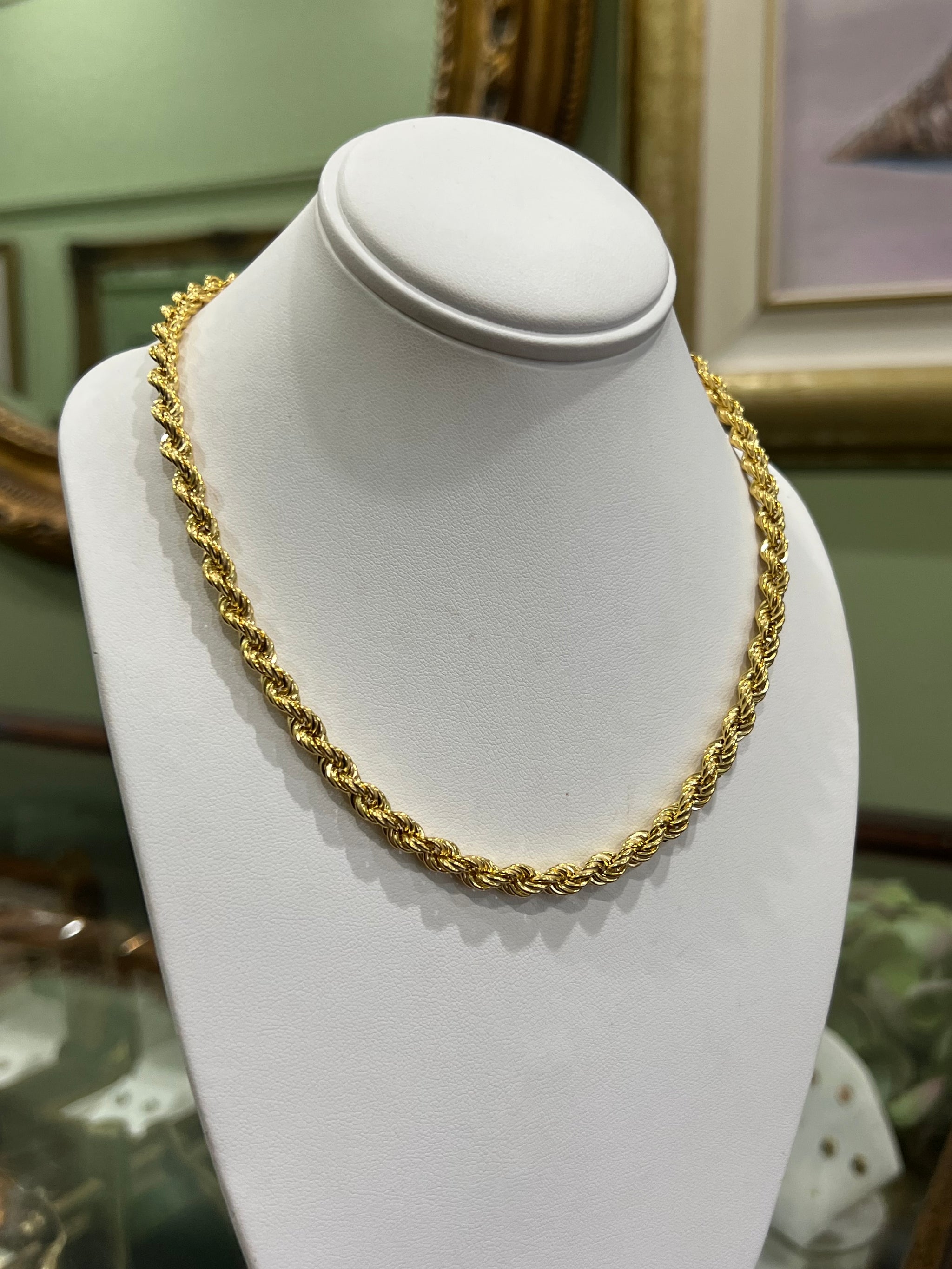A gorgeous Italian Rope link necklace in 9ct yellow gold.  Designed to be worn high on the collar.  This hollow link chain is comfortable to wear and a beautiful bold gold look.