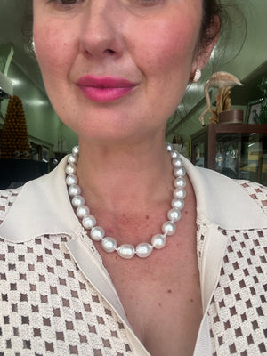 A lustrous stand of Australian South Sea Pearls, finished with a white gold clasp.   Sophisticated style at its best.
