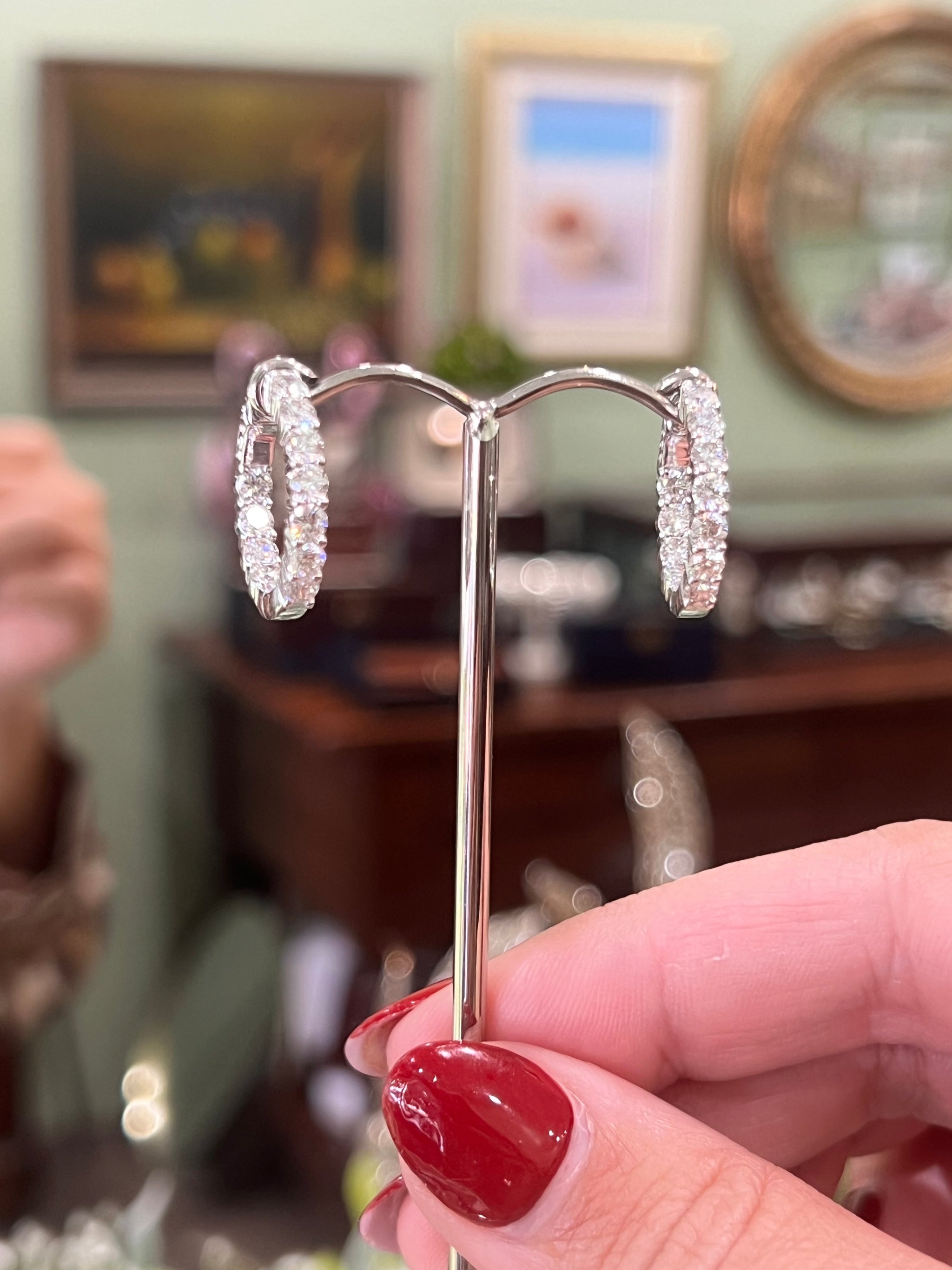 Diamonds, inside and out.  Introducting our 2.20ct Diamond Huggies - a breathtaking display of brilliance.  Each earring is adorned with 0.10ct of diamonds along the outer face and the inside ensuring a cascade of sparkle from every angle.