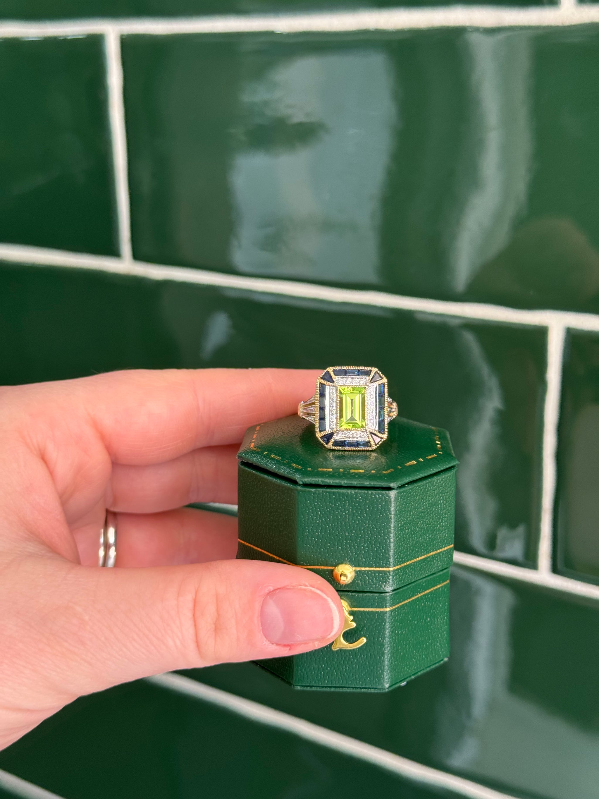 Designed to look pretty and practical wearing. Our darling Peridot and Diamond ring, set in...