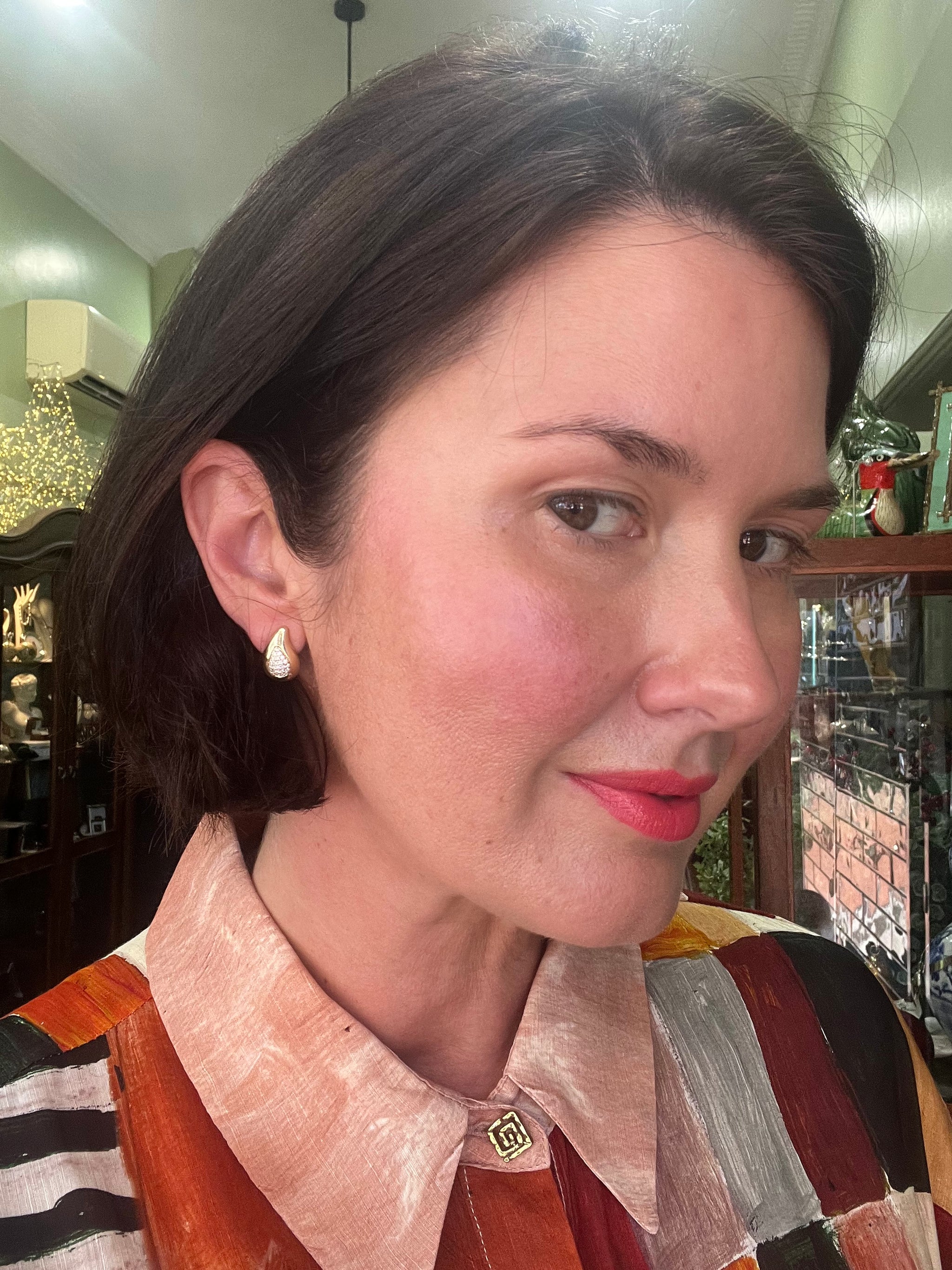 Delicious pear shaped golden dome studs, with pavé set diamonds.  These earrings sit beautifully on the ear for comfortable and stylish wearing.